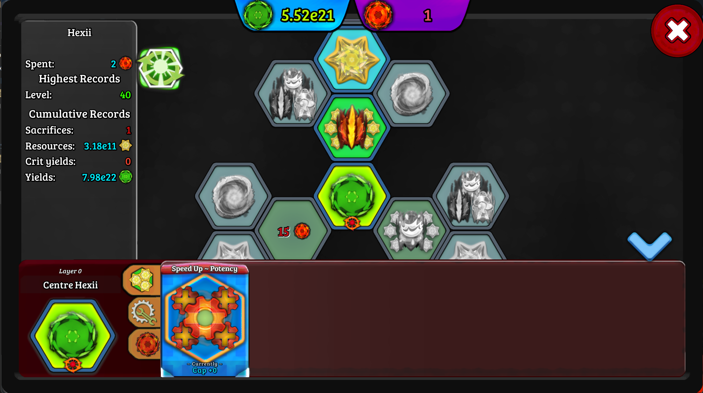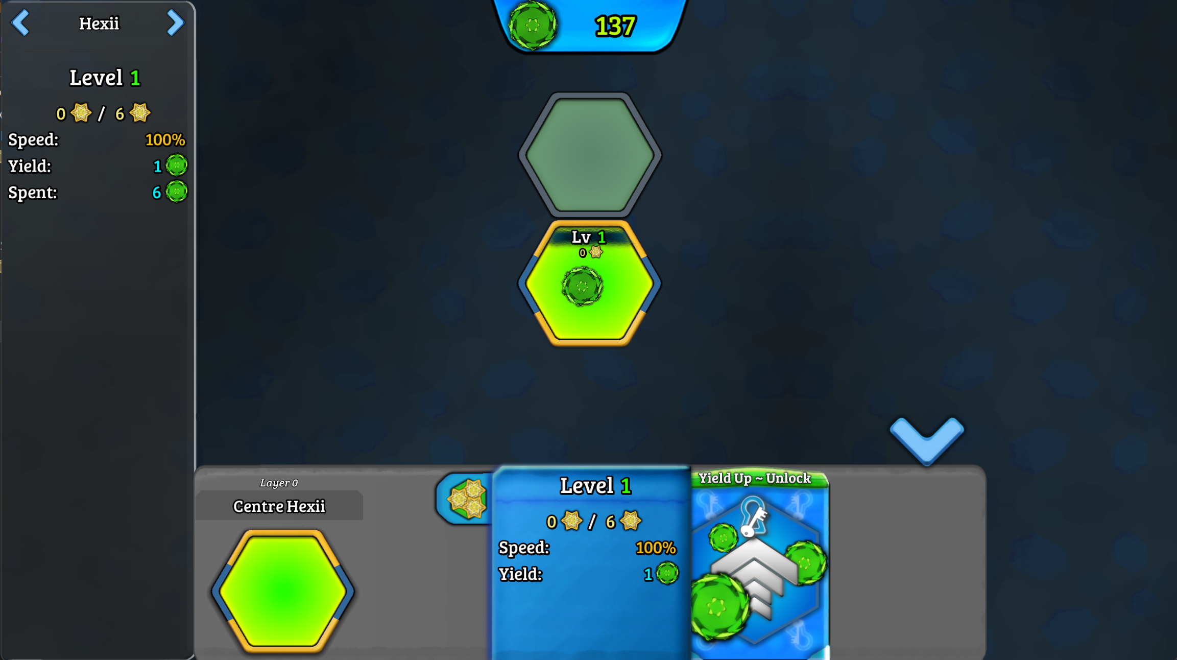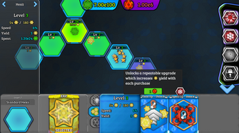Begin with a single hexii which produces a substance known as "Green Matter". Spend this valuable currency to improve your hexii by purchasing powerful upgrades. Branch out and develop more hexii in outer layers to passively provide EXP to your centre hexii and have it grow even stronger over time!